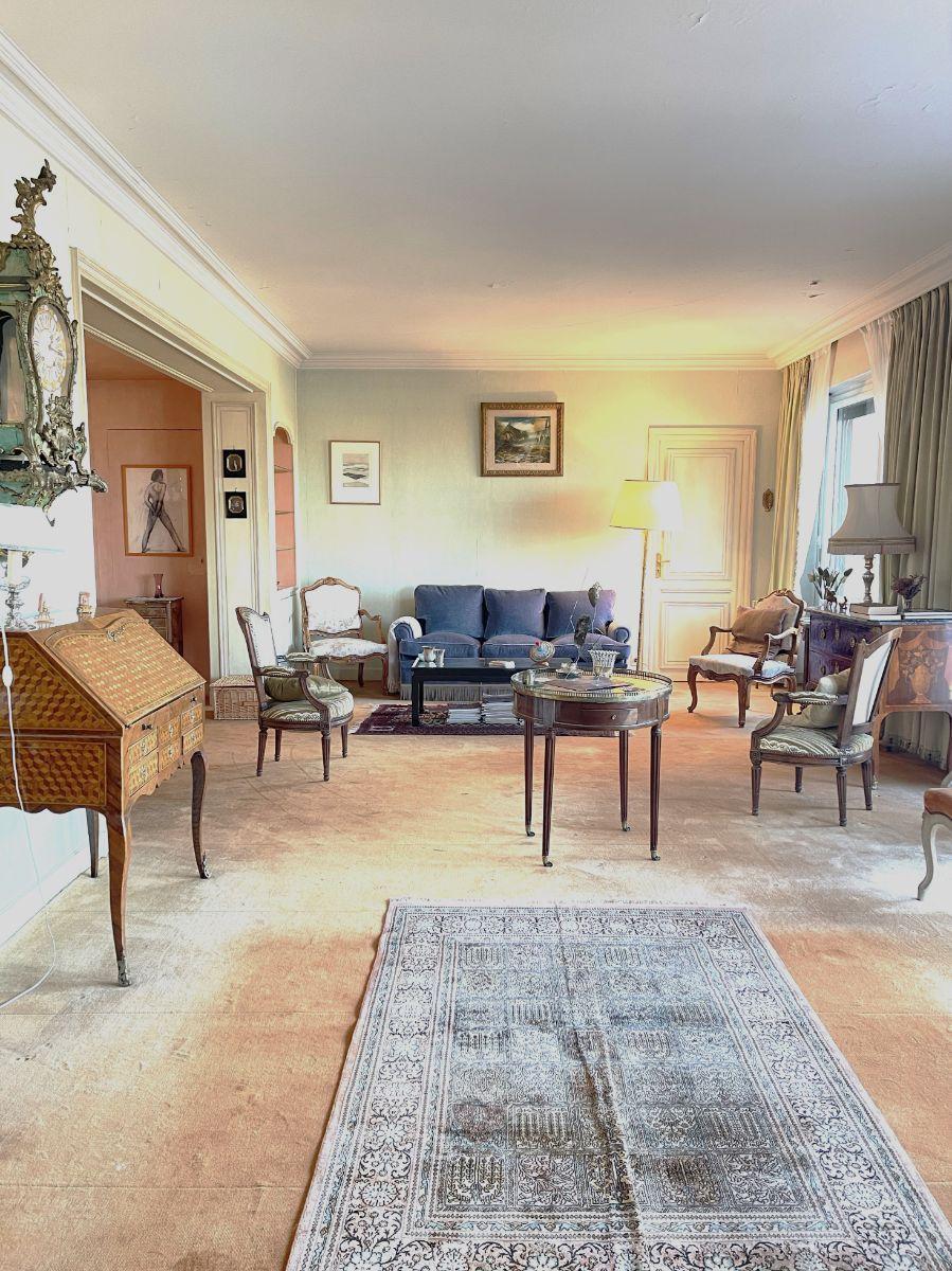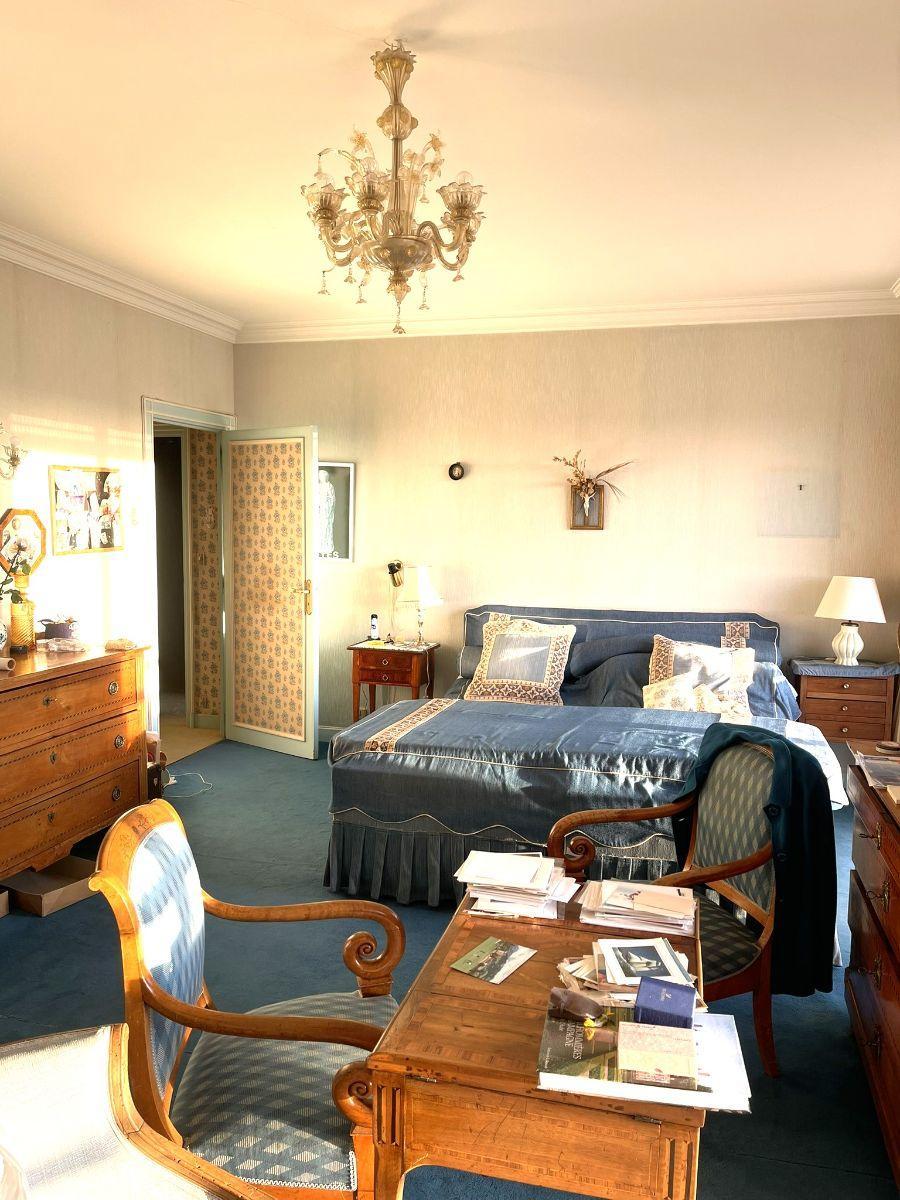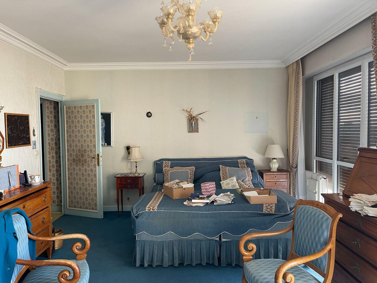 L’appartement se compose de trois chambres, deux salles de bains, ainsi que d’un grenier, deux caves et trois garages – un confort rare en ville.